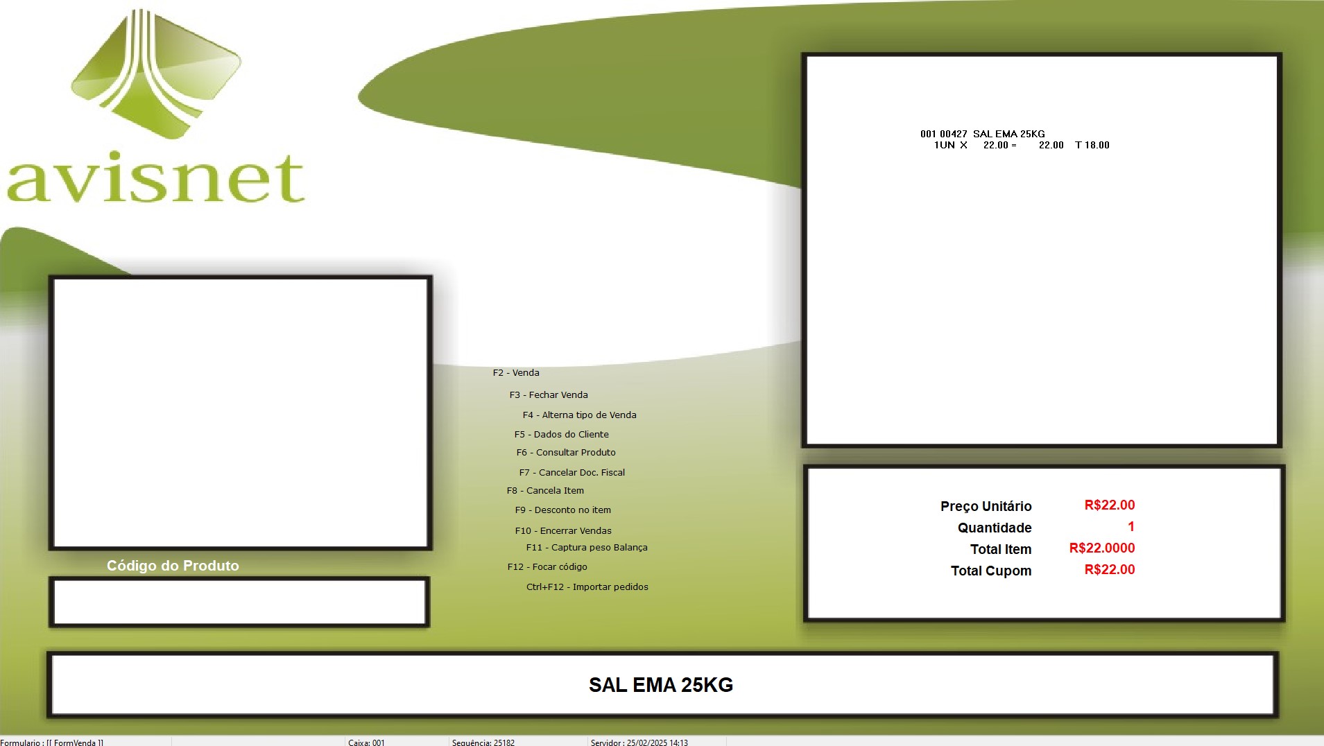 O sistema Avisnet permite emissão de cupons fiscais de forma direta ou por importação de dados.