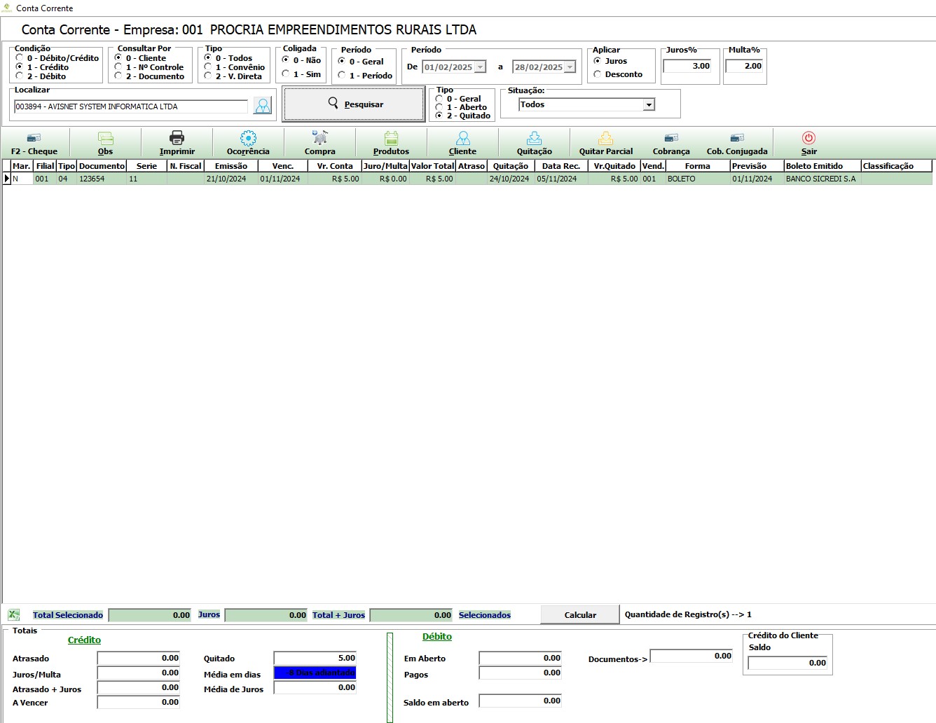 ✅ Conta Corrente do Cliente – Monitoramento de saldos, débitos e créditos