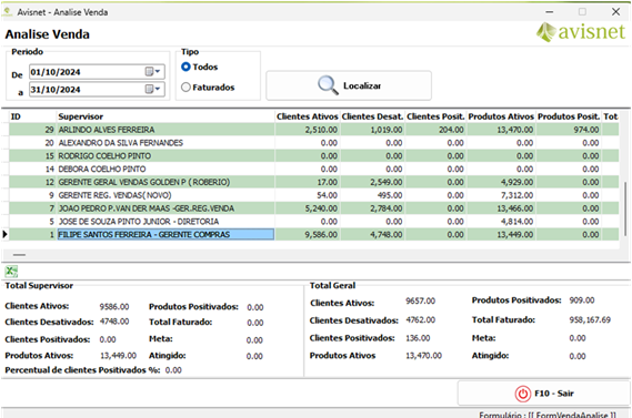 ✅ Análise detalhada do total faturado por supervisor e equipe.