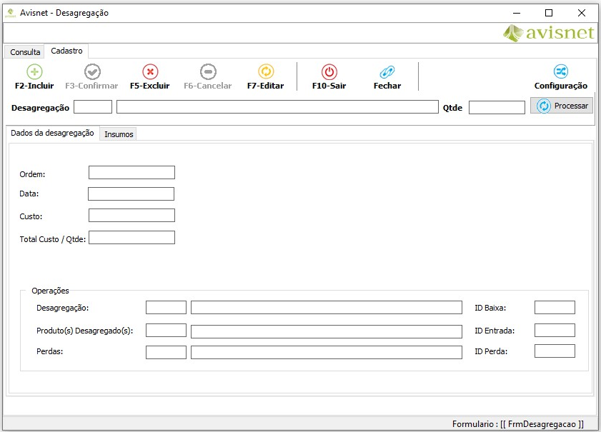 O módulo de desagregação do Avisnet permite a separação de produtos ou componentes para melhor gestão de estoque e custos.