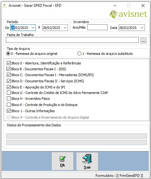 Gera SPED, SINTEGRA, Livros fiscais e Inventário;