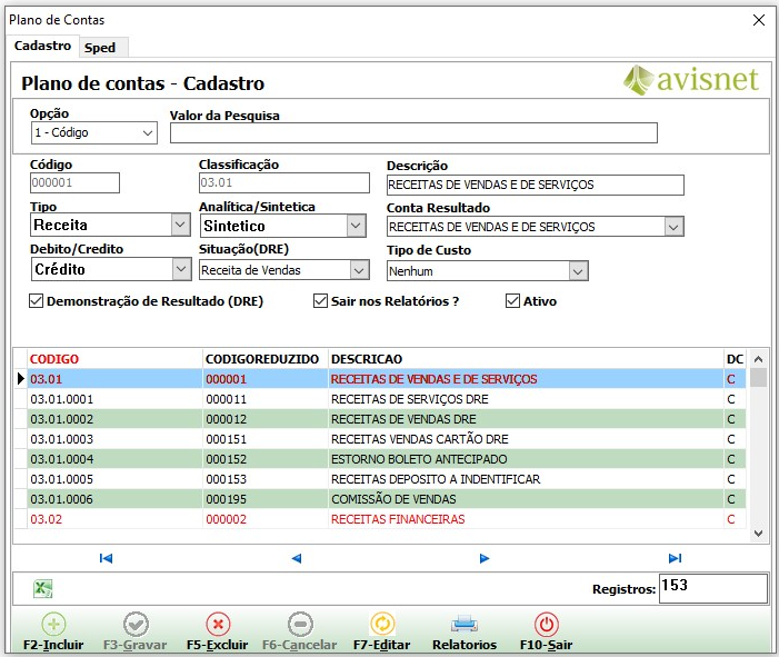 O módulo de Plano de Contas do Avisnet System permite uma gestão contábil eficiente: